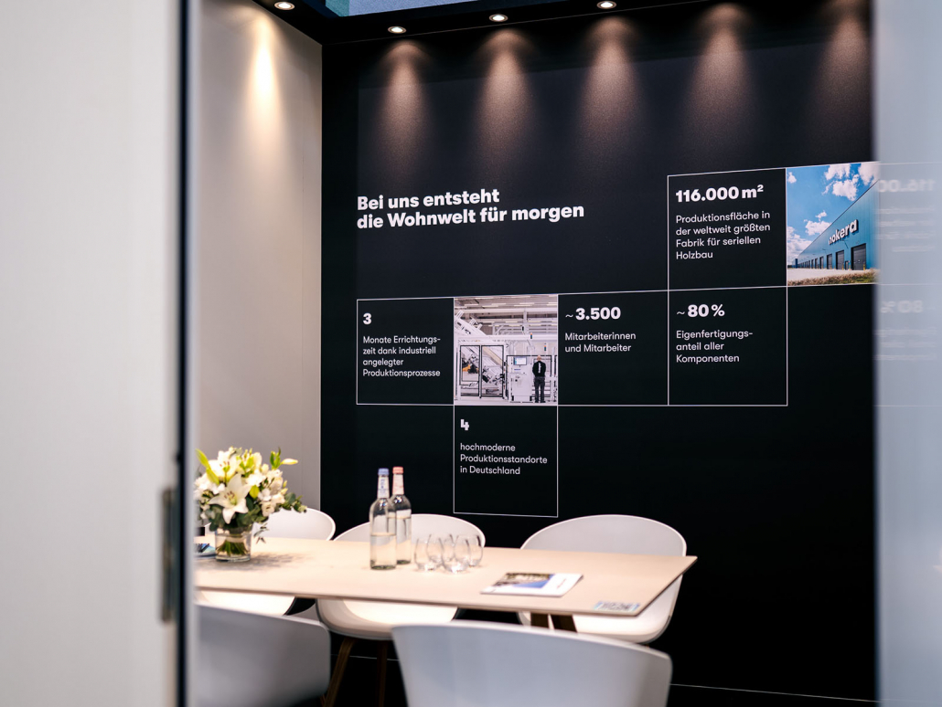 Der länglich angelegte Stand vermittelt Größe, Offenheit und eine klare Marktpositionierung im modernen Wohnungsbau.